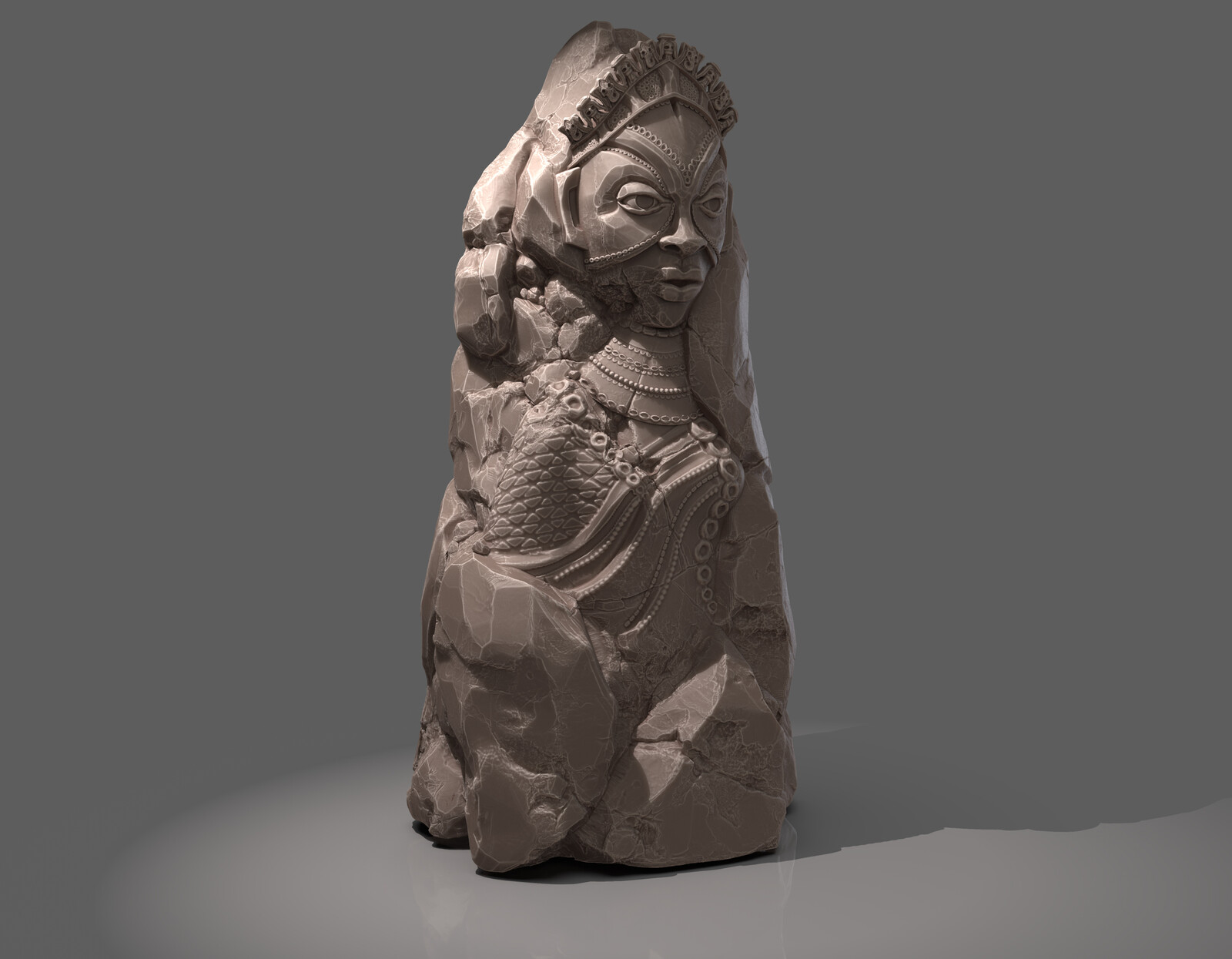This is an alternative take on another stone sculpture I did. My goal was to incorporate African sculpture motifs I found through research on the internet.
