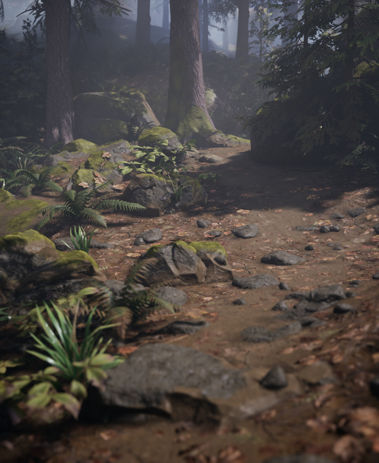 This was a scene I made for Jeremy Huxley's CGMA vegetation class. It was a very fun project! The plants and rocks were all sculpted in Zbrush. Low poly assets were a combination of Zbrush and Maya. All the tiling materials were done in Substance Designer. And finally the scene was composed and lit in Unreal Engine.